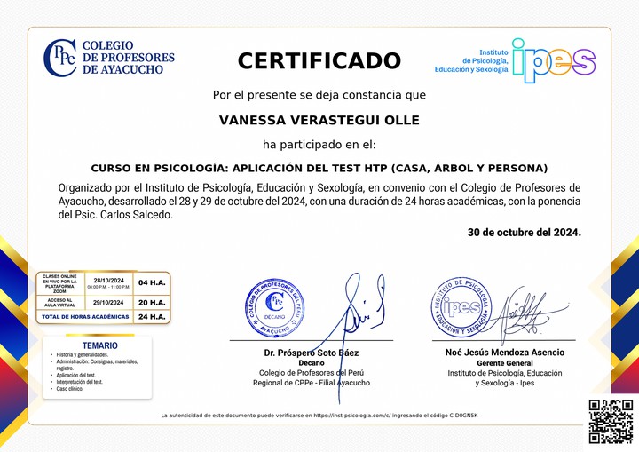 CURSO EN PSICOLOGÍA: APLICACIÓN DEL TEST HTP (CASA, ÁRBOL Y PERSONA)