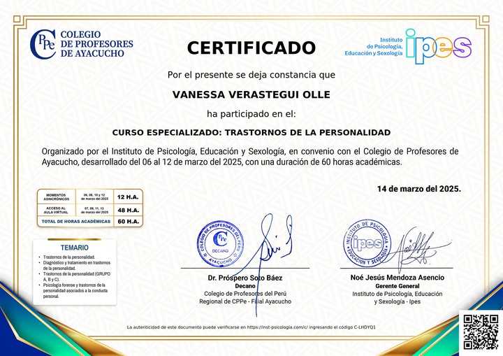 CURSO ESPECIALIZADO: TRASTORNOS DE LA PERSONALIDAD