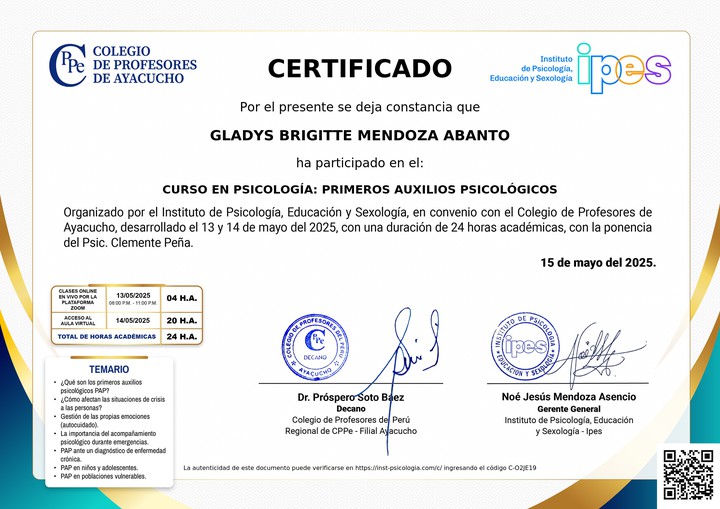 CURSO EN PSICOLOGÍA: PRIMEROS AUXILIOS PSICOLÓGICOS