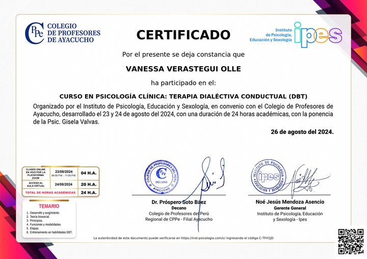 CURSO EN PSICOLOGÍA CLÍNICA: TERAPIA DIALÉCTIVA CONDUCTUAL (DBT)