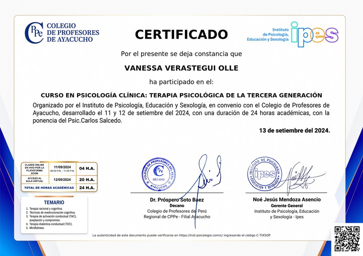CURSO EN PSICOLOGÍA CLÍNICA: TERAPIA PSICOLÓGICA DE LA TERCERA GENERACIÓN